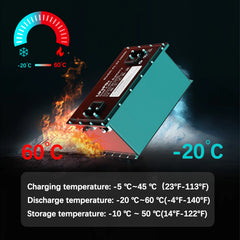 Smart Monitoring Suite: Bluetooth connectivity and a dedicated LCD display provide real-time cell voltage, temperature, and remaining capacity.